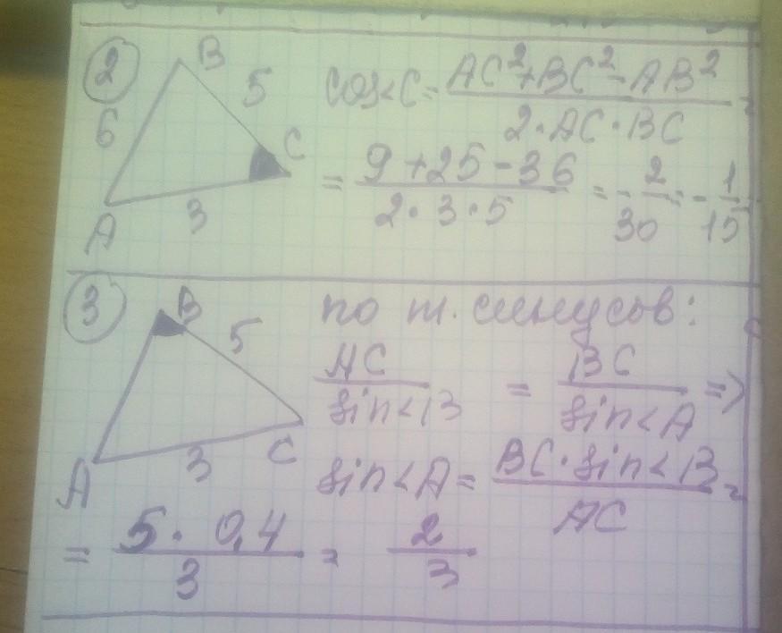 2. В треугольнике ABC AC-3 см, ВС=5 см, AB=6 см. Найдите Cоѕ С.