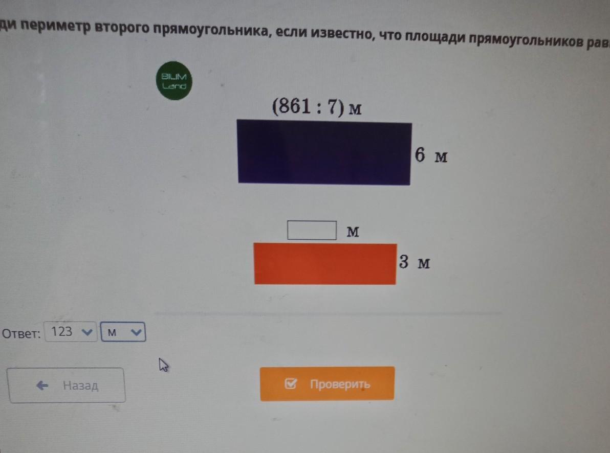 Найди периметр второго прямоугольника, если известно, что площади прямоугольников равны.