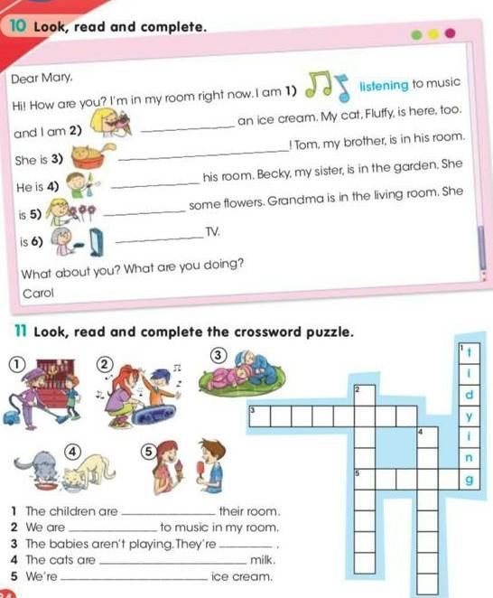 2.eating, 3 sleeping, 4 я не поняла, 5. gathering, 6 watching.