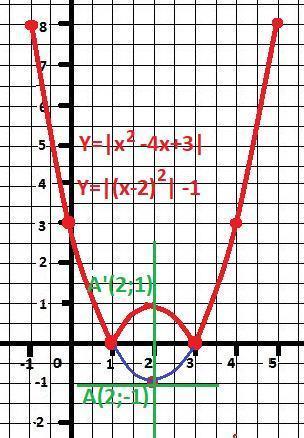 Но отрицательную часть графика надо отразить относительно оси ОХ - в точку A'(2;1).