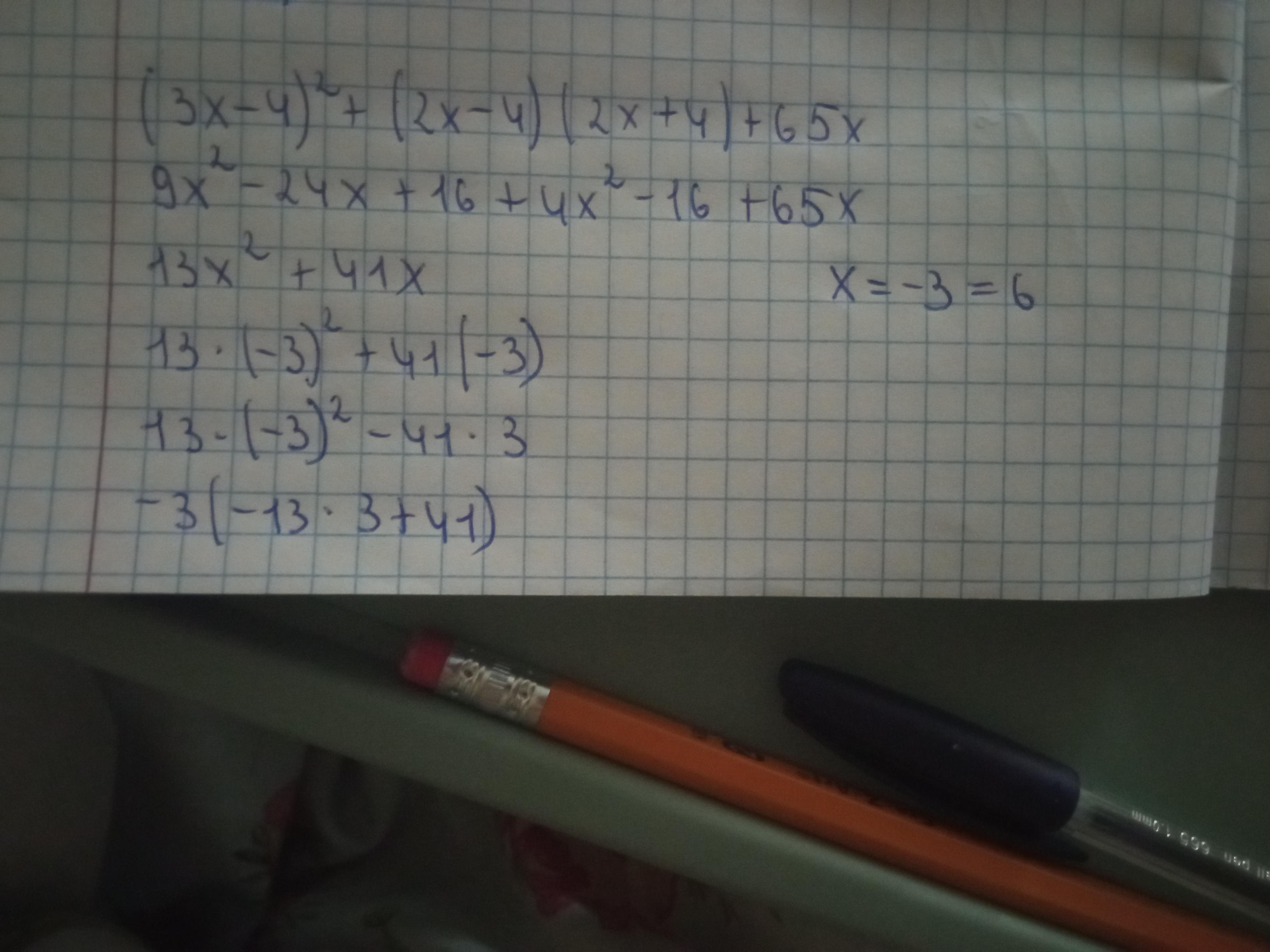 а) Упростите выражение:(3х-4) ²+(2х-4)(2х+4)+65х