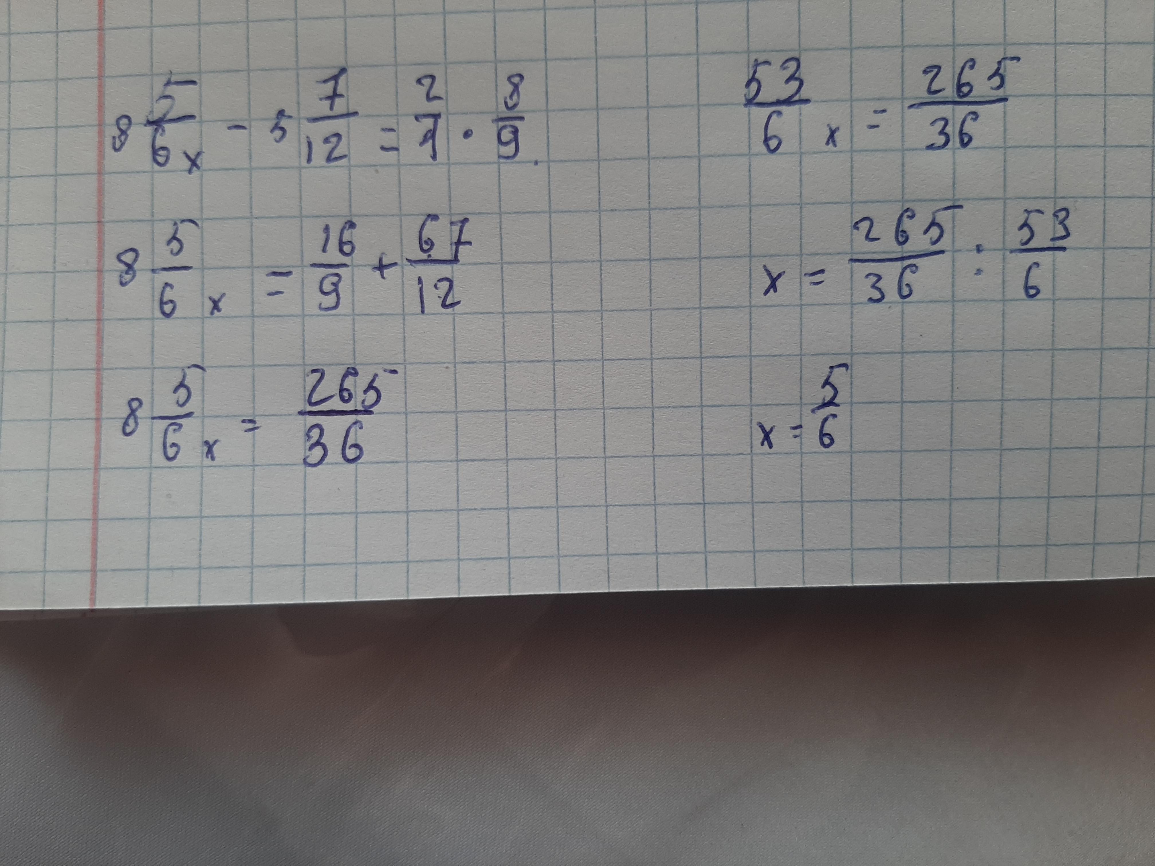 8 5/6х -5 7/12= 2×8/9 пжжжж