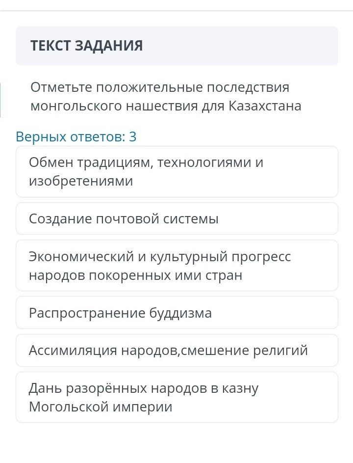 отметьте положительные последствия монгольской нашествие для Казакстана