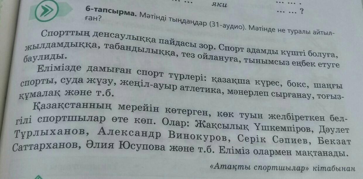6-тапсырма. Мәтінді тыңдаңдар (31-аудио). Мәтінде не туралы айтыл-