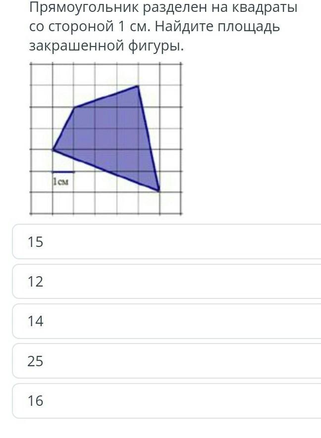 прямоугольник разделен на квадраты со стороной 1 см. Найдите площадь закрепленной фигуры