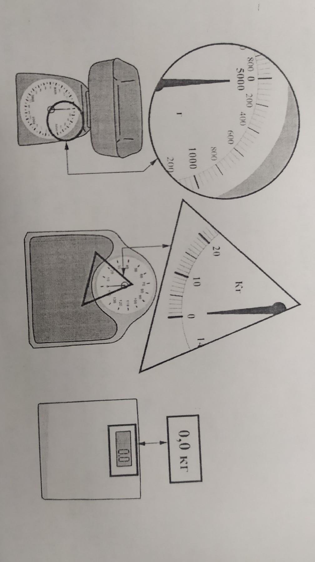 и прямоугольной выносках крупно показаны фрагменты шкал этих весов. Определите цену