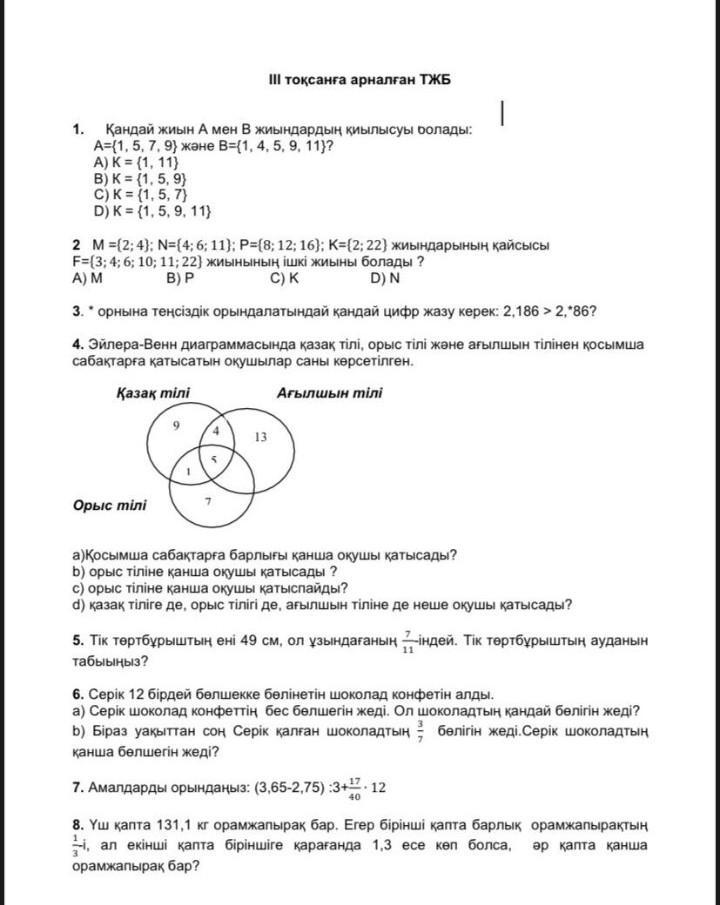 привет,поможешь по математике ТЖБ? 2нуска мен саган фото отправлю