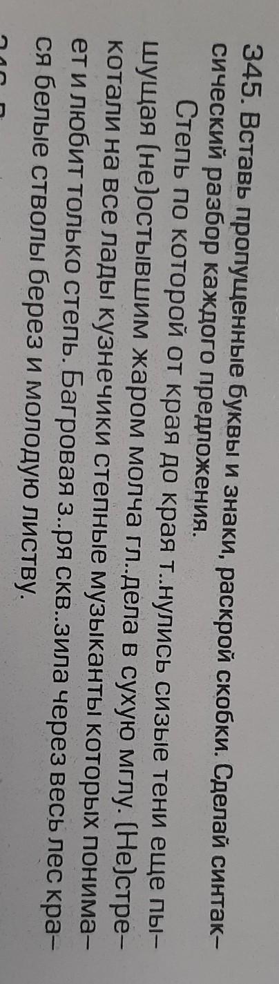 345. Вставь пропущенные буквы и знаки, раскрой скобки. Сделай синтак-
