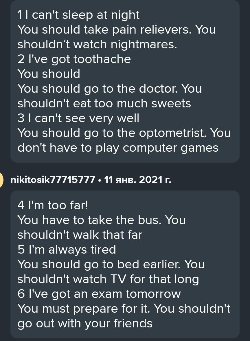 5) I've got a stuffy nose e) You should put some antiseptic on it.