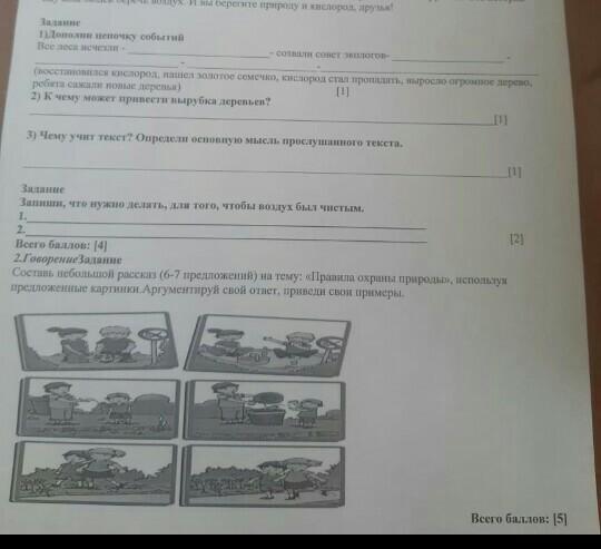 а пление неначку событні Все аса вече coniunt coner oro ( восстаноnс кислорода , панел за істое семена , селород сталі протіть мыросло огровое дерево ребіети са новые перена ) [ 1 ] 2 ) к чему может привести вырубка деревьев ? І 3 ) Чему учит текст ? Онредели основную мысль прослушаного текста 1 Зали , что нужно делать , але того , чтобы воздух был чистыми .