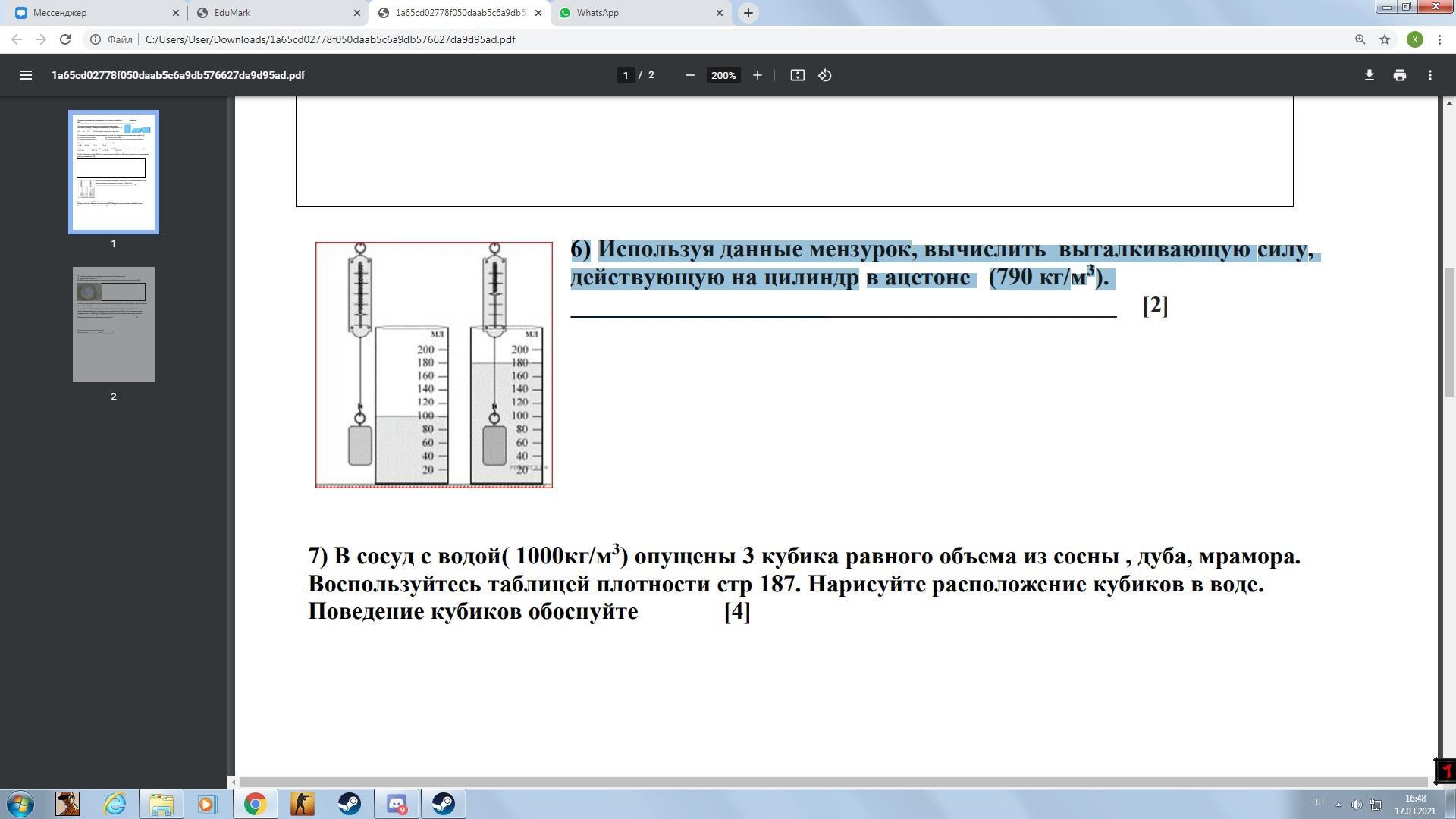объем тела 180-100=80 мл =80см³ =80*10^-6 м³