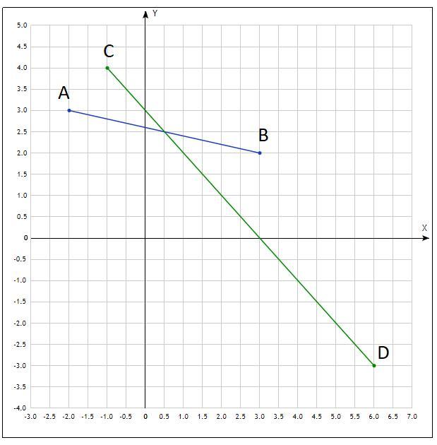 b) Запишите координаты точки пересечения отрезок АВ и прямой СD.