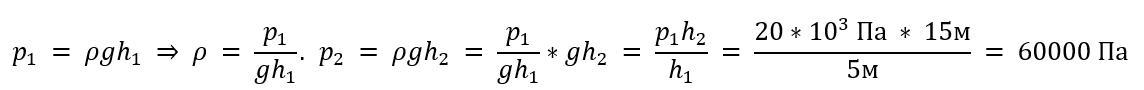 h1 = 5м. p1 = 20*10^3 Па. h2 = 15 м.