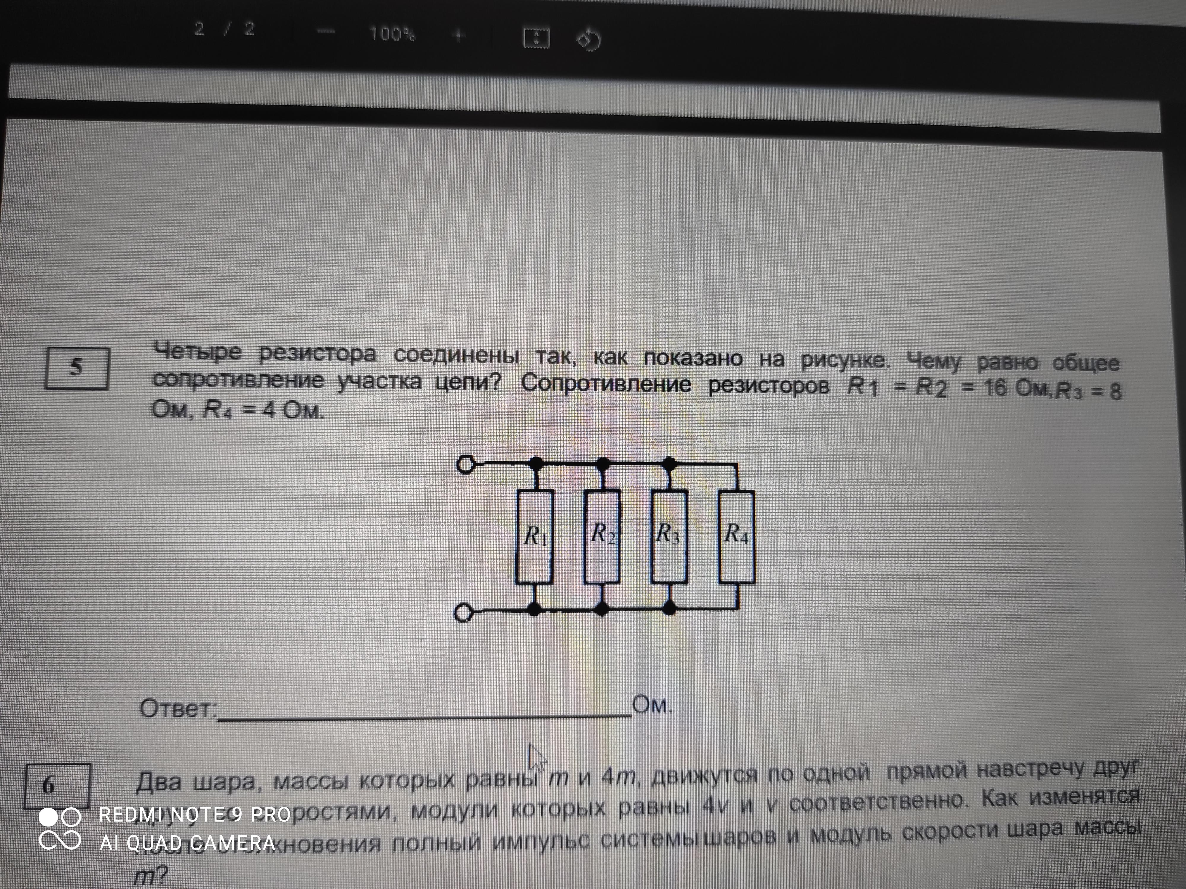 Общее сопротивление = 2 Ом так как: