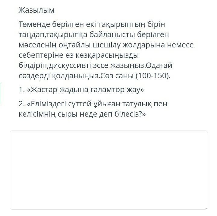 Помагите пожалуста прошу у меня тжб по казакскому языку нужно срочно эссе вопрос на фото даю 20 балов!!!