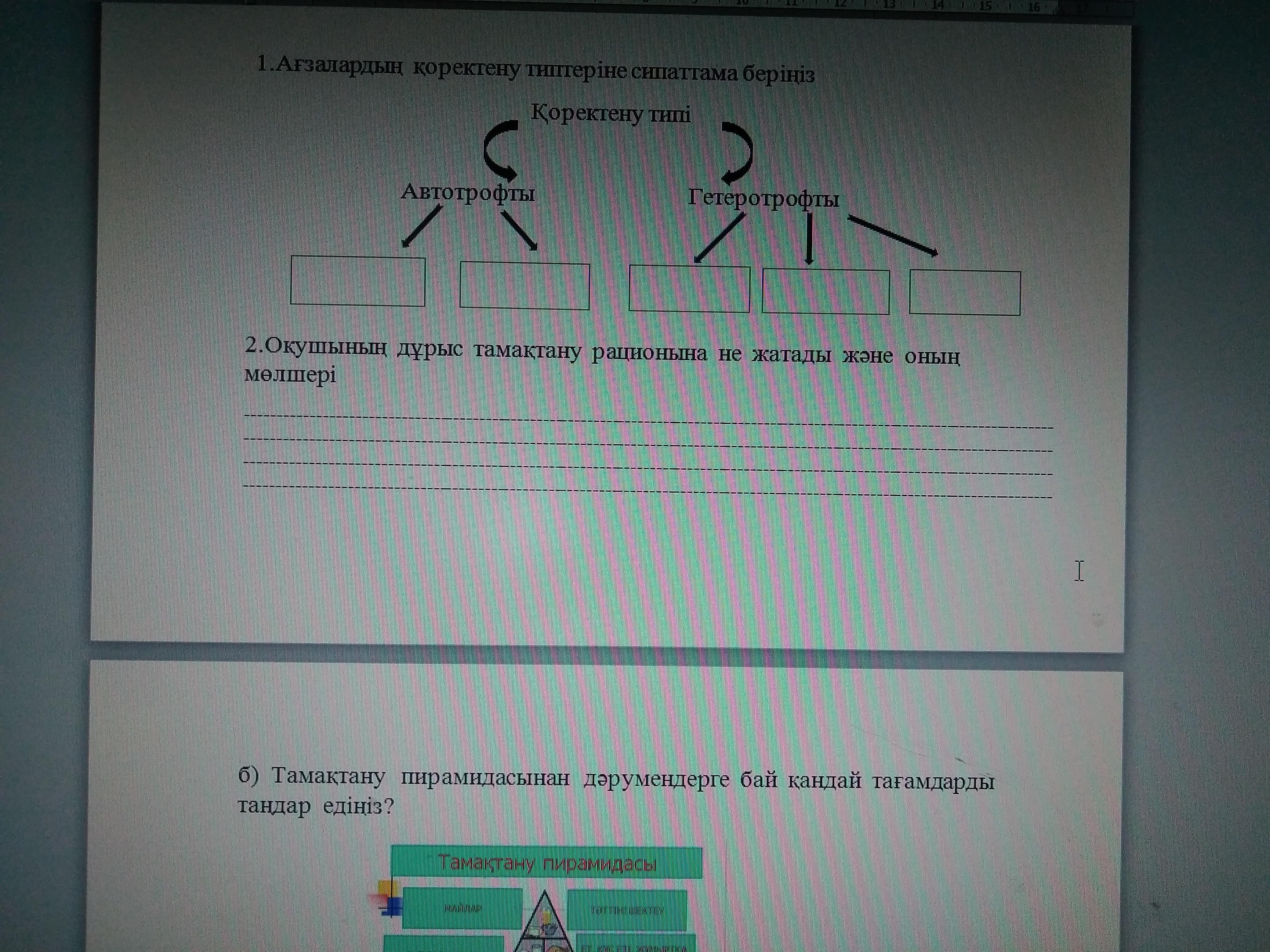 1) Гетеротрофти; ссавці,птахи,анфібій. Автотрофи; вищі рослини, зелені водорості