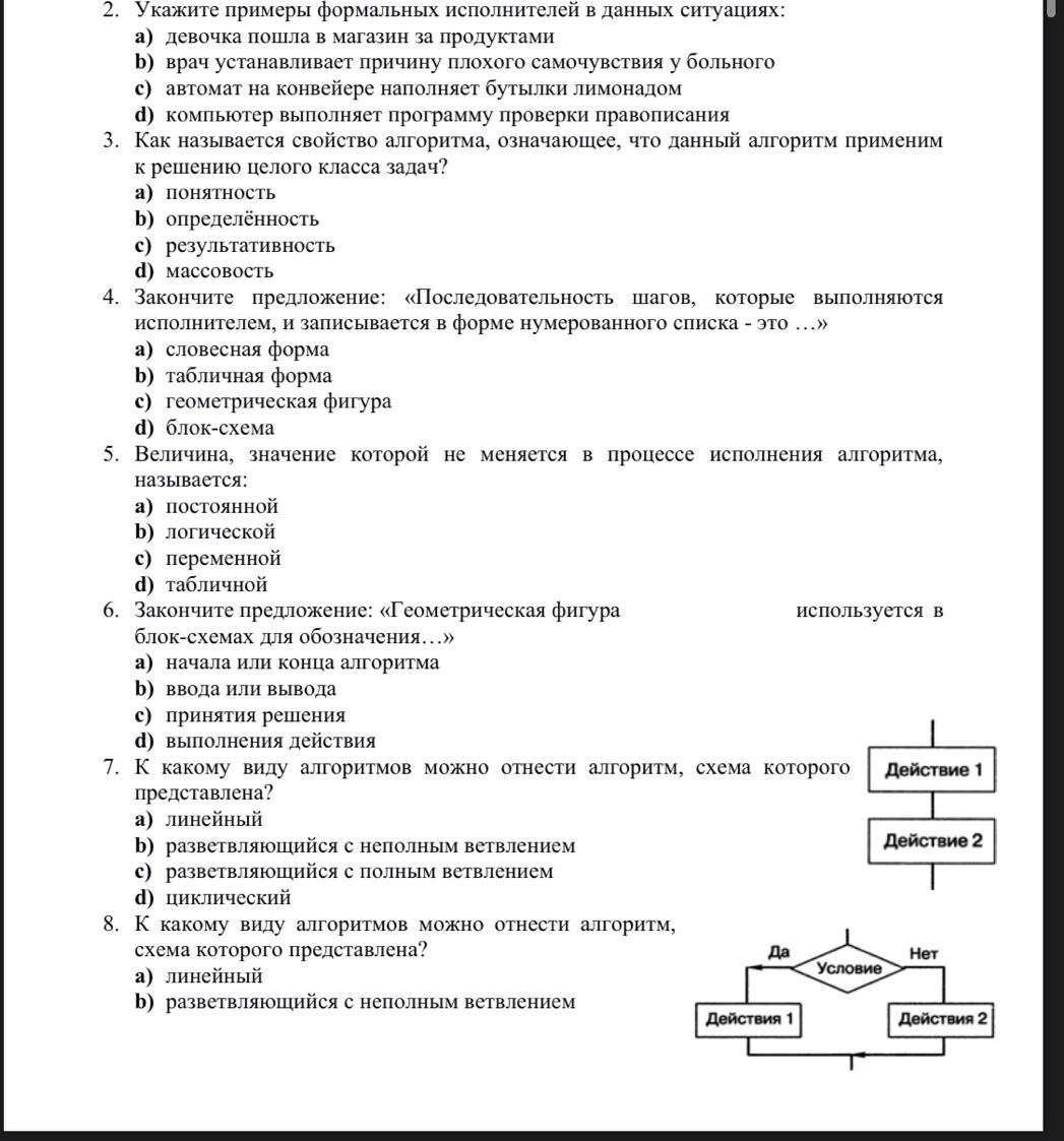 6. Закончите предложение: «Геометрическая фигура блок-схемах для обозначения...»