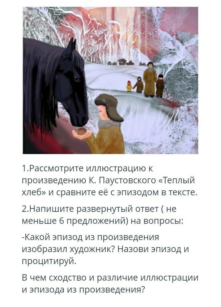 1.Рассмотрите иллюстрацию к произведению К. Паустовского «Теплый хлеб» и сравните её с эпизодом в тексте.