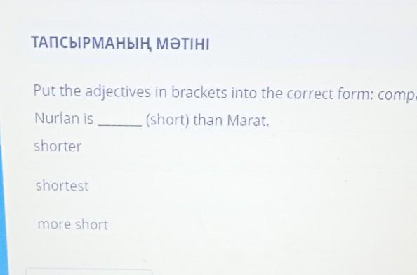 Nurlan is_____(short) than Marat.