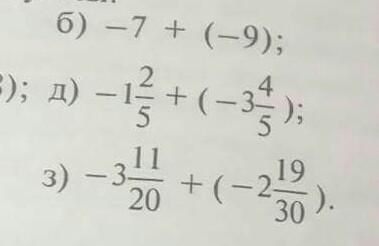 Д) -1 2/5 + (- 3 4/5)= - 4 6/5=-5 1/5
