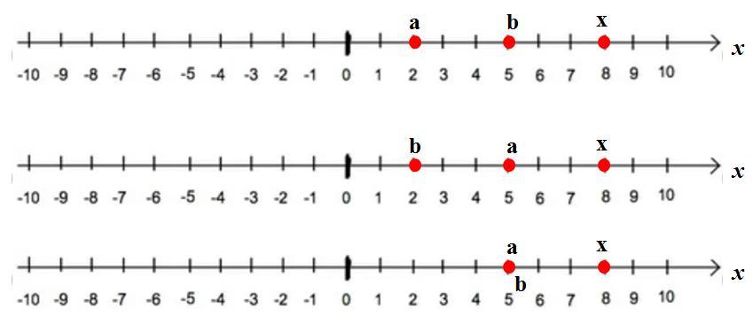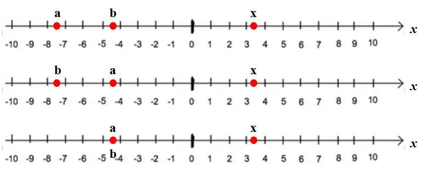 На координатной прямой отмечены числа 0, а и b. Отметьте на этой прямой какое-нибудь число x так, чтобы при этом выполнялись три условия: x-a> 0, x-b>0, abx>0.