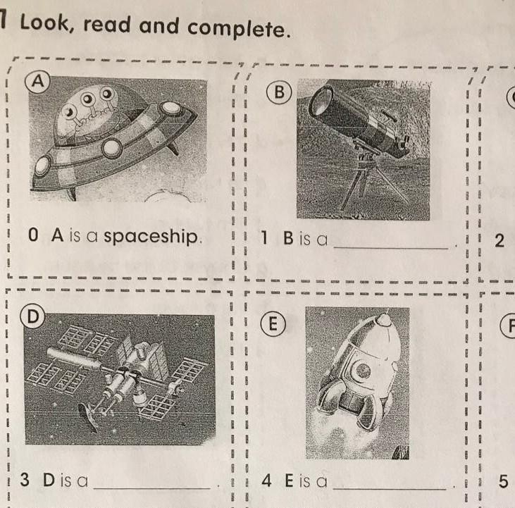 Е is a rocket, В is a telescope, D is a space station