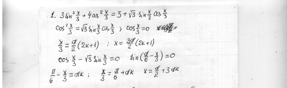 1. 3sin^2x/3+4cos^2x/3=3+ корень 3 sin x/3cosx/3