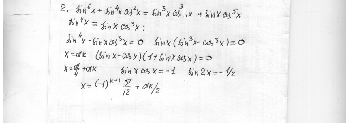 2. sin^6x + sin^4x cos^2x = sin^3 x cos3x + sinx cos^5x