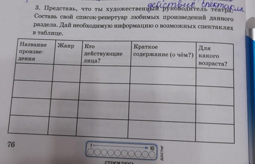 Представь что ты художественный руководитель театра Составь свой список репертуар любимых произведений данного раздела Да необходимую информацию о возможных спектаклях в таблице