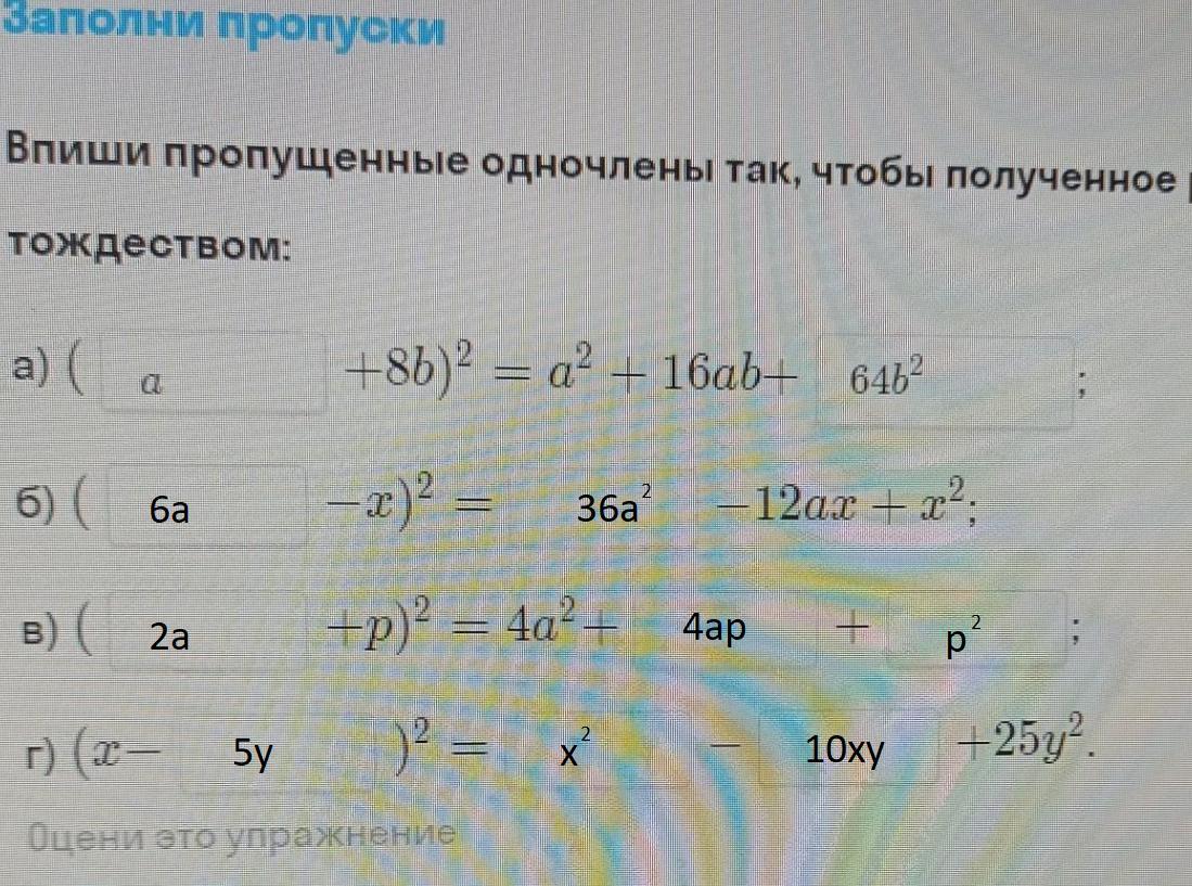 Обьяснение: ну там пользоваться формулами добавления и отнимания в квадрате