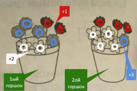 Красные цветы : в 1ый горшок надо добавить 1 цветок.
