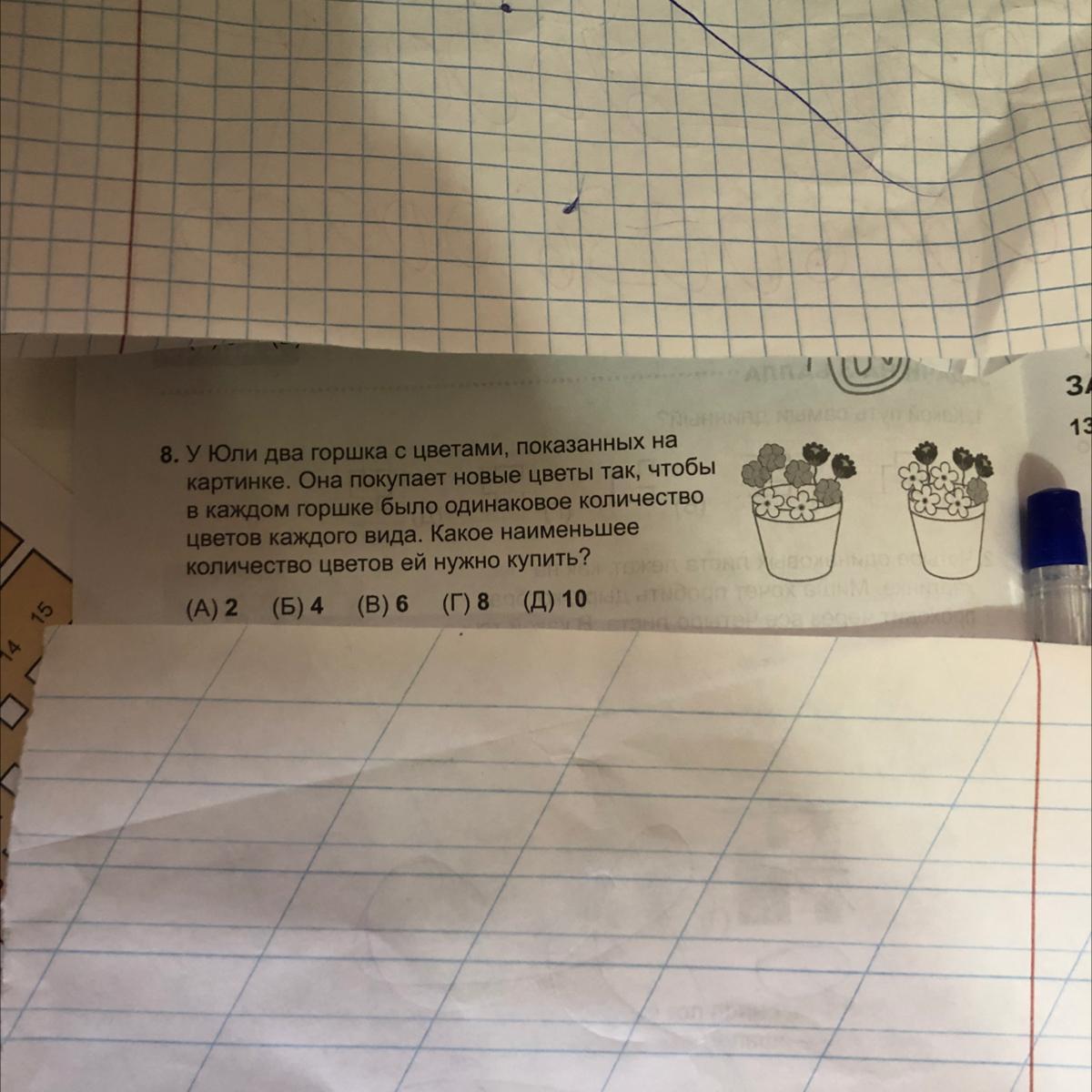 Синие цветы ; во 2ой горшок надо добавить 3 цветка