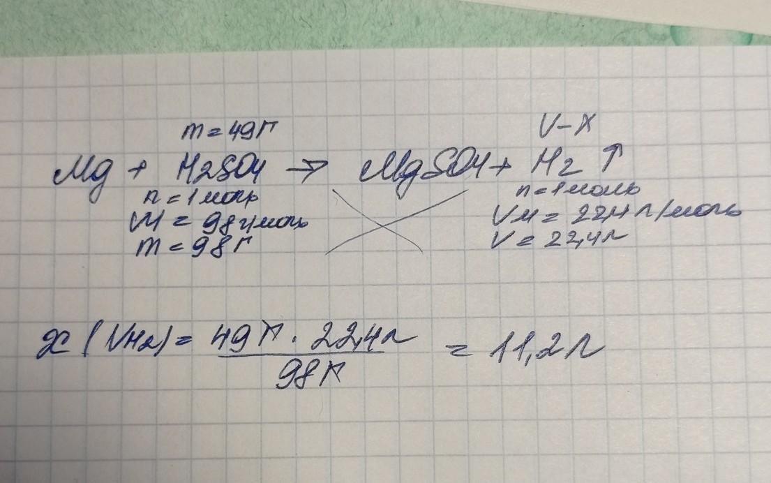 Який об'єм водню (н.у.) виділяється при взаємодії магнію із сульфатною кислотою масою 49г?