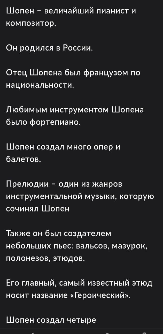 Відповідь: Не правильно 2 пттання, он народився -Желязовій Волі під Варшавою, 5 питання, він не складав опер і балетів і 8 питання не правильне- Етюд "Революционерный"