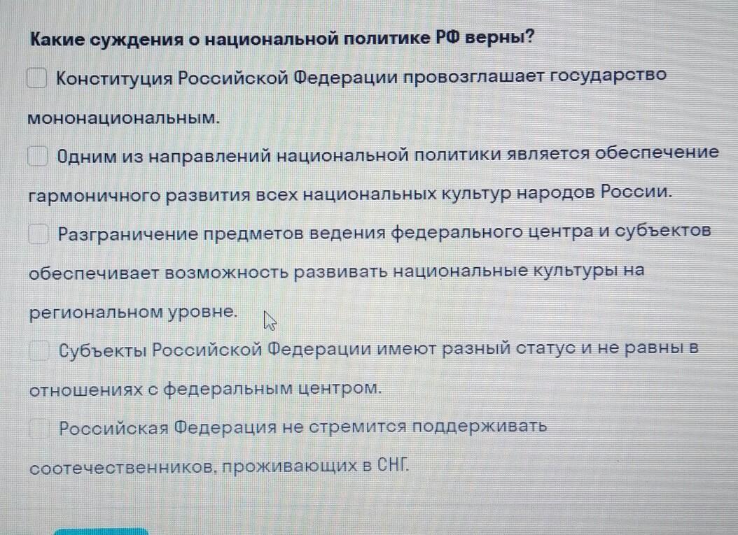 Выбери правильные суждения? Какие суждения о национальной политике РФ верны?