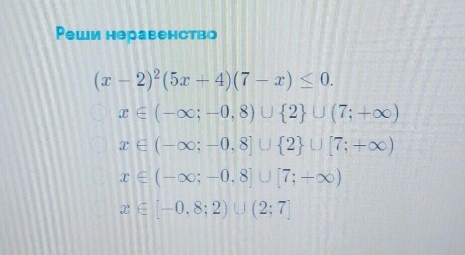 х(-бесконечность:-0,8)U{2}U[7;+бесконечность)