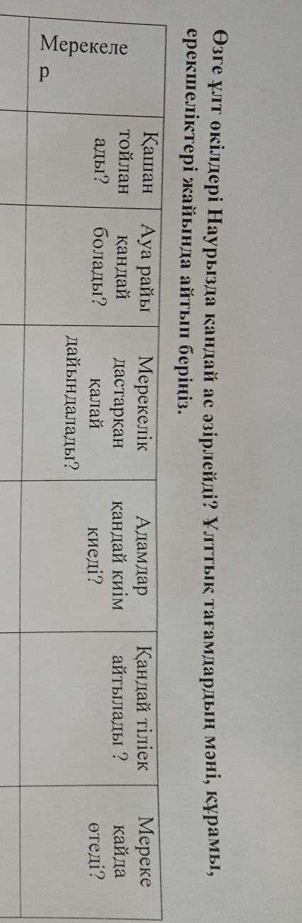 Өзге ұлт өкілдері Наурызда қандай тас әзірлейді? Ұлттық тағамдардың мәні, құрамы, ерекшеліктері жайында айтып беріңіз. дам 25 баллов