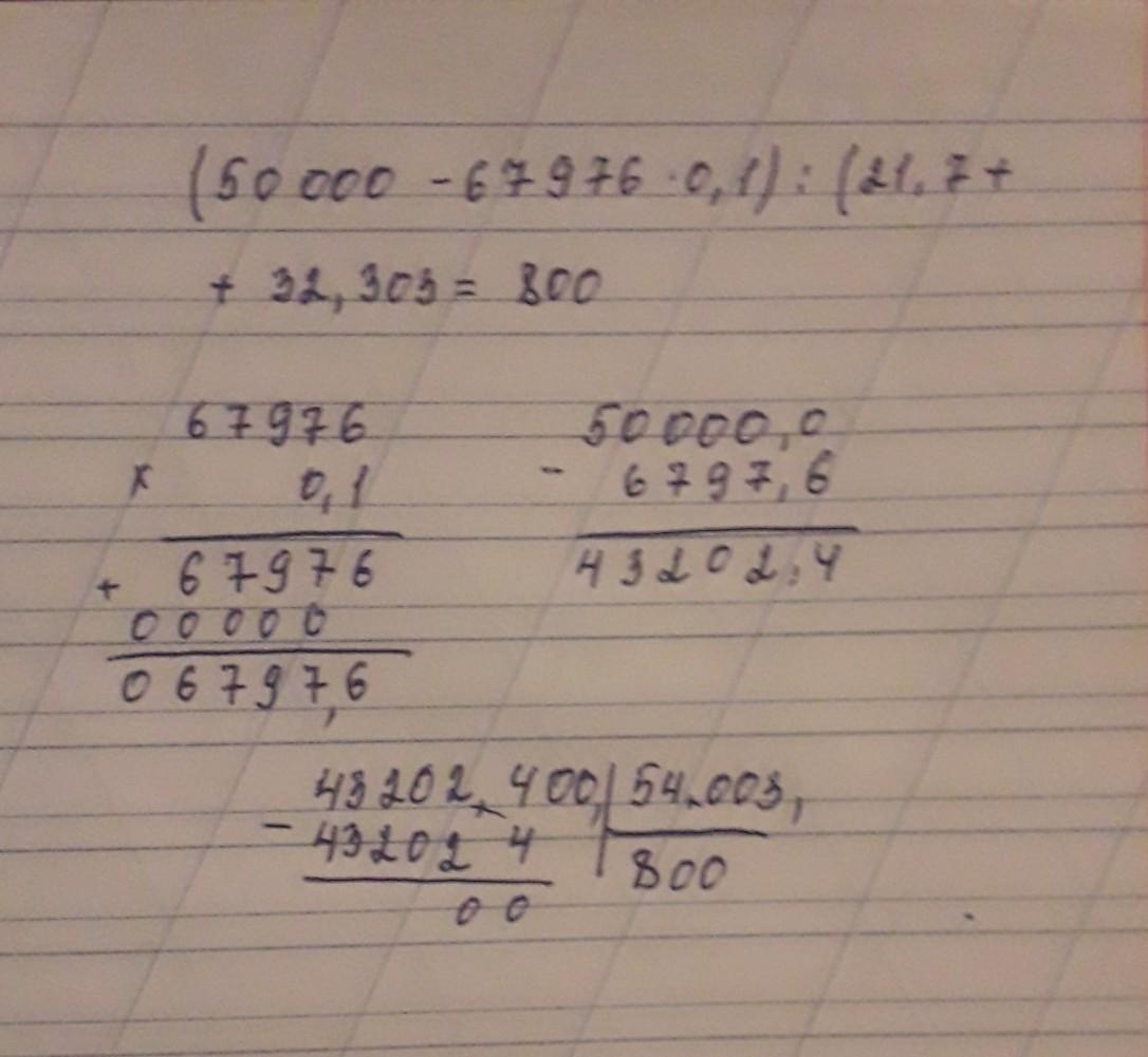 когда выполняешь деление сколько цифр после запятой делителя (54, 003) в делимом передвигаем на столько цифр после запятой здесь после запятой стоит одна цифра 4, нам надо на три цифры передвитуть поэтому после цифры 4 ставим два нуля