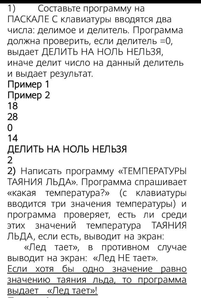 writeln('ДЕЛИТЬ НА НОЛЬ НЕЛЬЗЯ')
