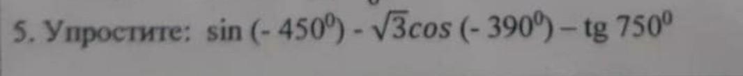sin(-450°)-√3cos(-390°)-tg750°=-sin450°-√3cos390°-tg750°=-sin(360°+90°)-√3cos(360°+30°)-tg(2·360°+30°)=-sin90°-√3cos30°-tg30°=-1-√3·√3/2-√3/3=-1-1,5-√3/3= -2,5-√3/3