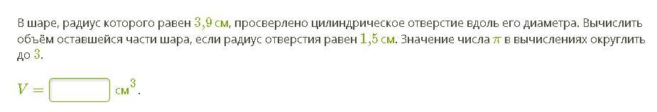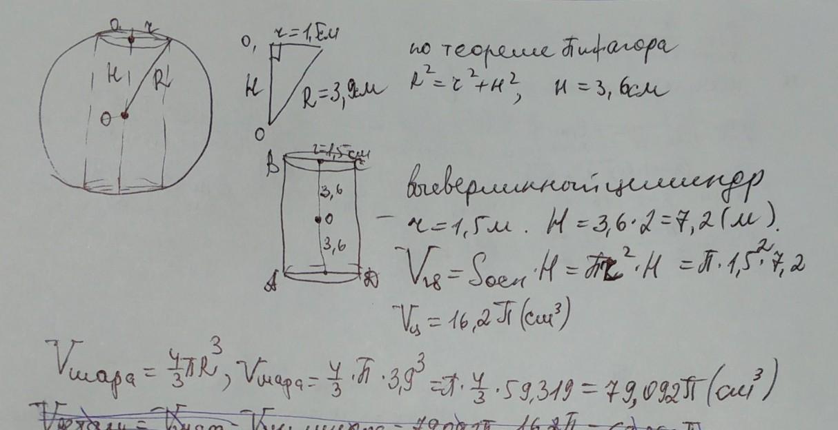 V оставшейся части шара =186,732 см^3
