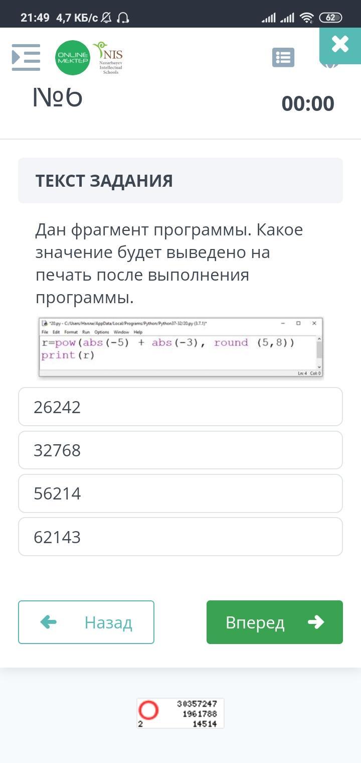 r = pow(abs(-5) + abs(-3), round (5,8))
