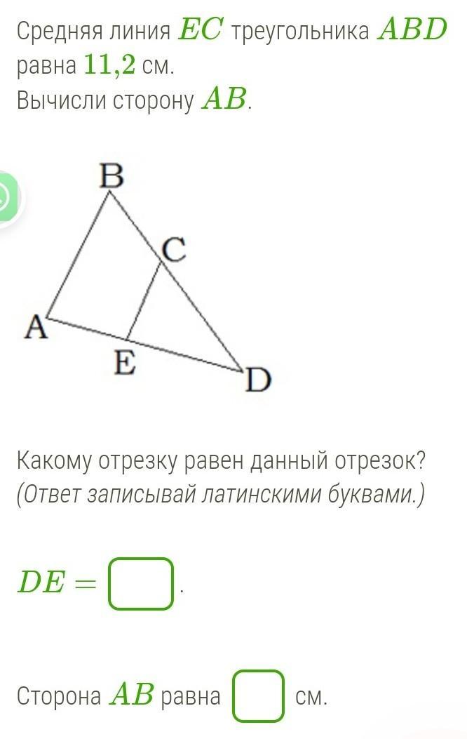 по теореме средней линии АВ в 2 раза больше ЕС значит АВ=22,4