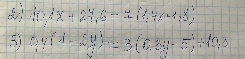 3) 0.4(1-2у)=3(0.3у-5)+10.3