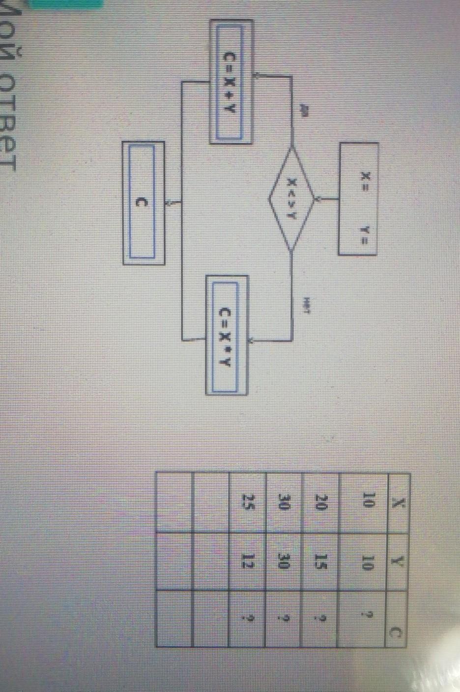 Рассмотрите блок-схему и заполните таблицу для значений переменной С. <>Это знак неравно