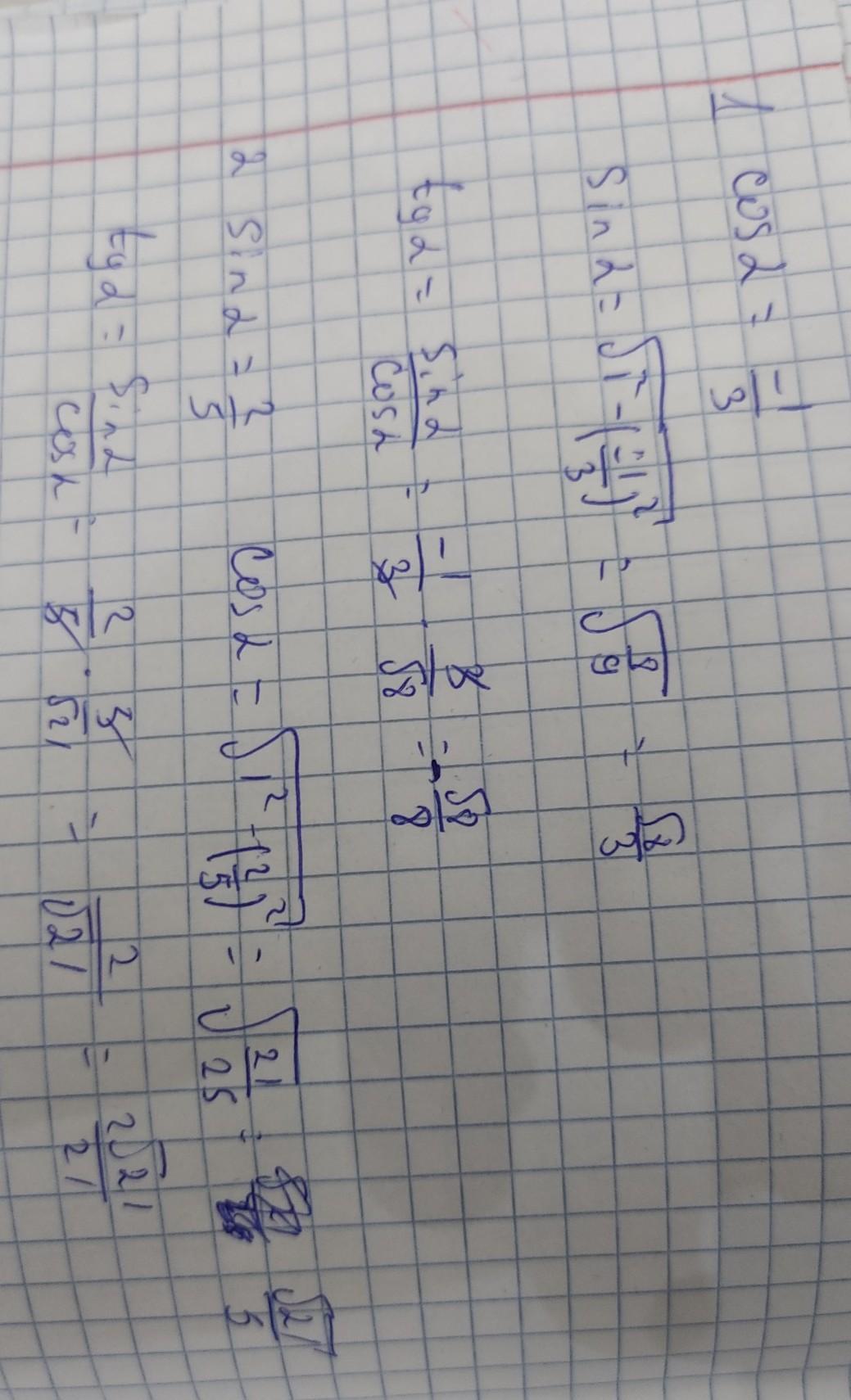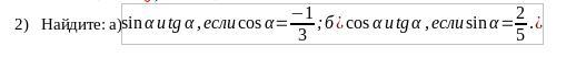 Найдите: а)sin a u tg a, если cis a=-1/3;б cos a u tg a, если sin a=2/5