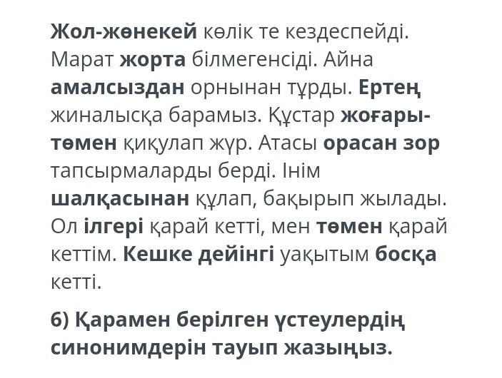 қарамен берілген үстеулердің синонимдерін тауып жазыңыз