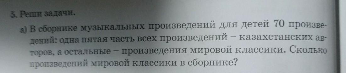 1/5 часть Казахстан, то есть другие 4 мир, то есть надо 70 разделить на пять, это Казахстан =14, остальное 56 это мир