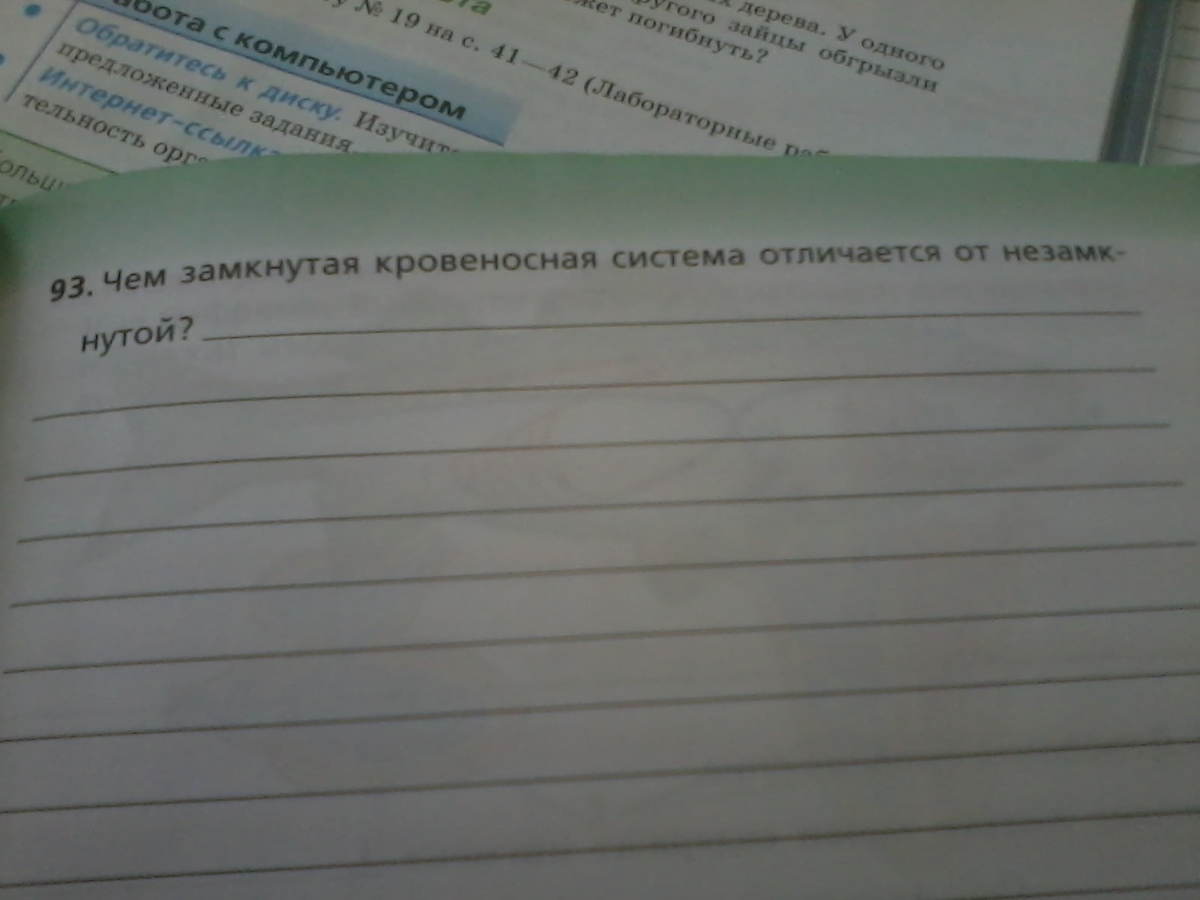 93. При замкнутой кровеносной системе кровь течет по сосудам (вены ,артерии, капилляры) А при незамкнутой кровь изливается в специальные полости внутри тела.