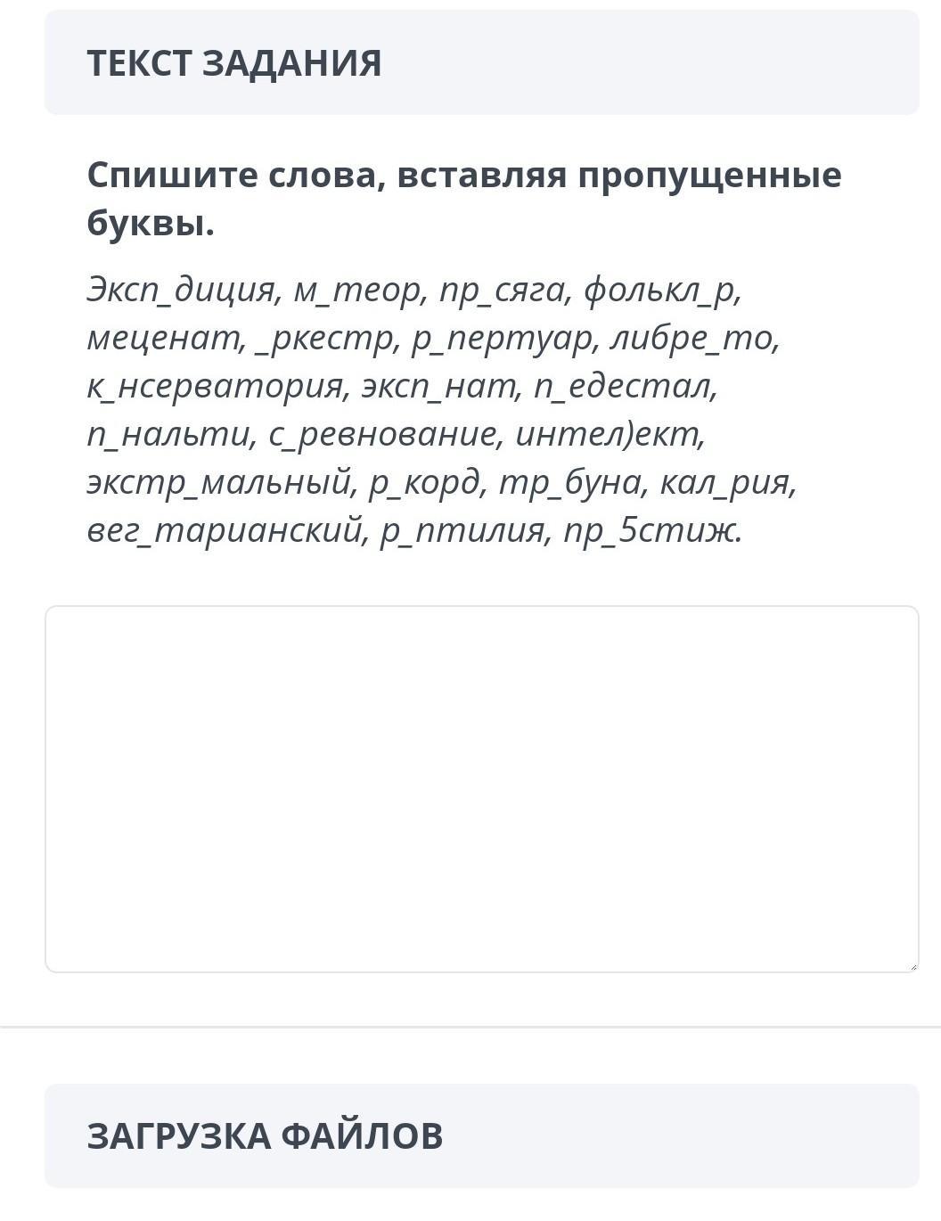 Экспедиция, метеор, присяга, фольклор,меценат, оркестр,репертуар,либретто, консерватория,экспонат,пьедестал, пенальти,соревнование,интеллект,экстремальный,рекорд,трибуна, калория,вегетарианской, рептилия, престиж.